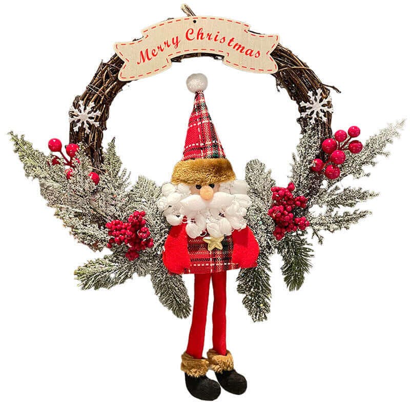 Made from high-quality wooden materials, the decoration is lightweight, durable, and designed to last through many holiday seasons. The bow and Santa Claus accents give the design extra personality, enhancing the classic vine ring style with festive charm. Its handcrafted appearance makes it ideal for those who love warm, traditional Christmas décor with a unique twist.
